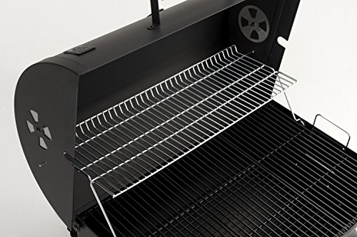 Ein weiteres Feature ist der ebenfalls großflächige Warmhalterost auf dem Sie bereits fertiges Grillgut weiterhin warm halten können ohne das es schwarz wird. Beim Grillen hilft Ihnen auch das, in den Deckel integrierte, Thermometer. Um die richtige Temperatur zu erreichen sind links und recht jeweils im Deckel und in der Feuerschale Luftschieber eingebaut. Dadurch können Sie die Luftzufuhr wie gewünscht regulieren.