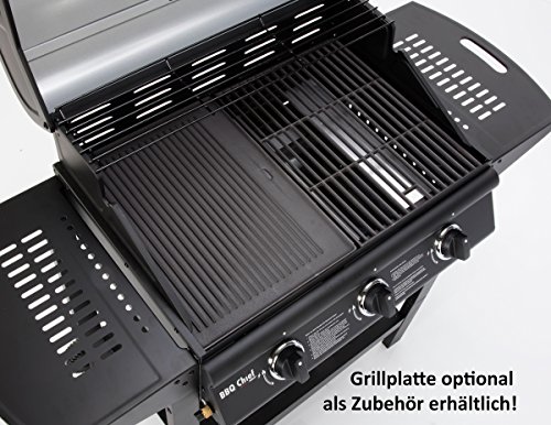 3 Brenner mit insgesamt 10,5kW Heizleistung und Piezo-Zündung an jedem Brenner..