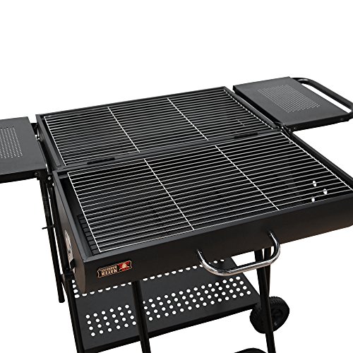 Dieser Holzkohlegrill kann durch die Nutzung des Deckels bei Bedarf seine Grillfläche mit wenigen einfachen Handgriffen verdoppeln. In der Grillstation und auf zwei ausklappbaren