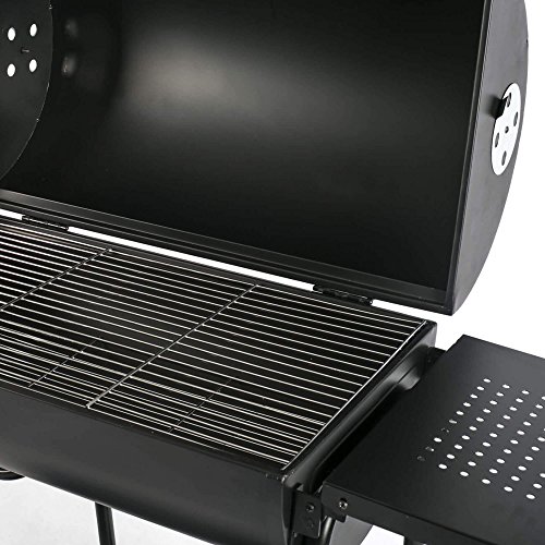 Seitentischen bietet er dabei Platz für ausreichend Grillgut, um beide Flächen voll auszunutzen. Als geschlossener Holzkohlegrill eingesetzt, bietet dieses Modell mit Edelstahl-Rost
