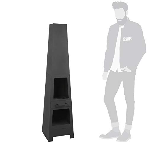 schwarzer Gartenkamin im kubistischen Stil