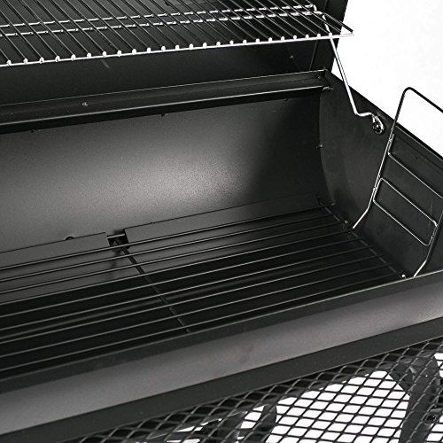 Der solide Smoker ermöglicht direktes und indirektes Grillen mit einzigartigem Räucheraroma. Mit Hilfe eines höhenverstellbaren Holzkohlerosts und des
