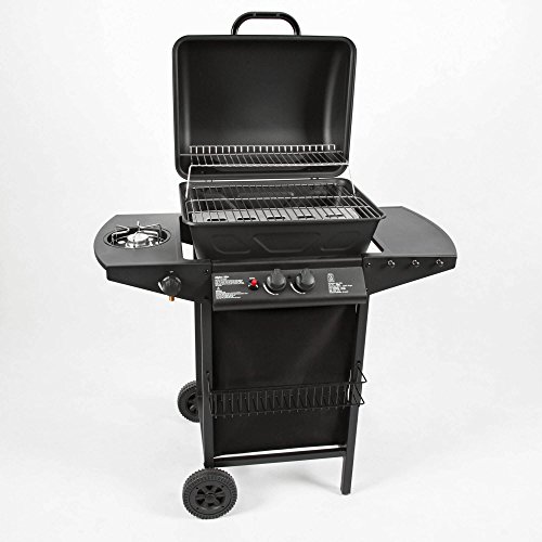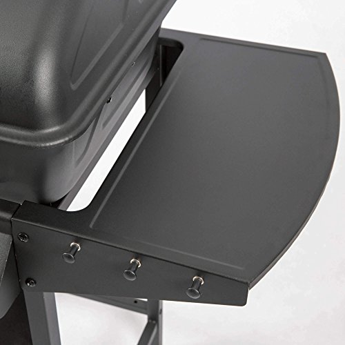 Höhe von 86 cm findet der Grillfreund neben Grill und Seitenbrenner auch einen praktischen Seitentisch sowie eine Reihe von Haken. Hier kann beispielsweise mit großer Leichtigkeit