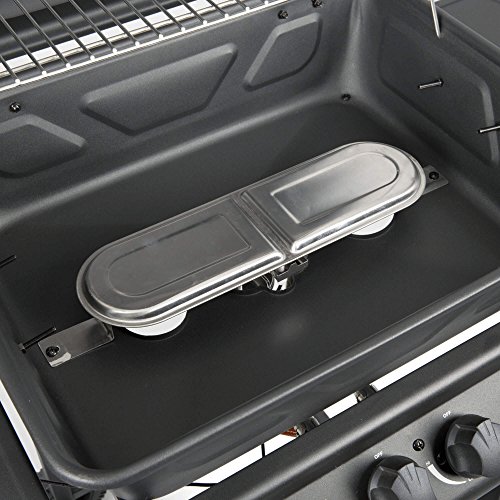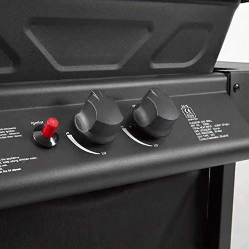 Mit satten 48×37 cm Grillfläche, der stufenlos regelbaren Befeuerung durch zwei Edelstahl-Brenner und der Piezo-Zündung, gewährleistet der Gasgrill eine sichere und gleichzeitig