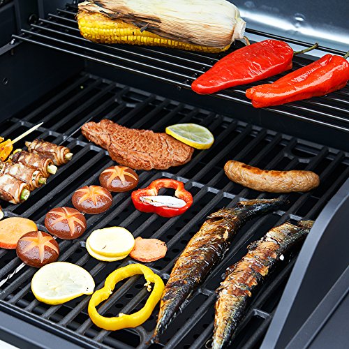 – Grillfläche Aufteilung: 4 x 25 x 46 cm (2x Gas + 2x Holzkohle)