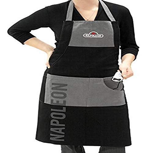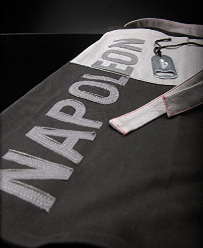 Napoleon Grillschürze für SIE & IHN^Widerstandsfähiges Leinen in stylischem Grau mit schwarzen Akzenten^integrierter Flaschenöffner