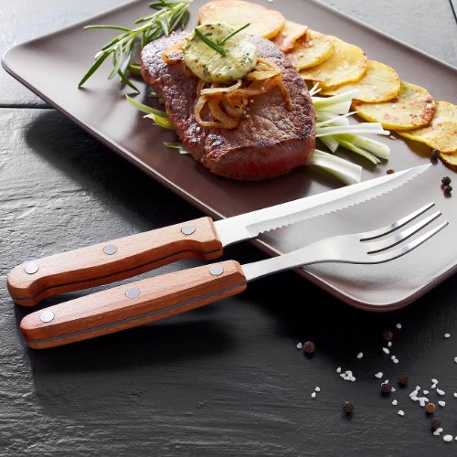 Bitte beachten Sie: Dieses hochwertige Besteck darf – wie alle Besteckteile mit Holzgriffen – zum Reinigen nicht in die Spülmaschine gegeben werden!. Steak-Besteck – Außerdem relevant oder passend zu: Frühstücksmesser, Essbesteck, Messerset, Grillen, Grill