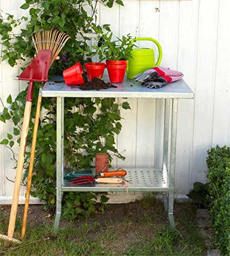Ein Pflanztisch aus verzinktem Stahl für ein müheloses Bepflanzen oder Umtopfen im Garten, auf dem Balkon oder der Terrasse. Dieser Gärtnertisch wird auch sehr gern direkt im Gewächshaus eingestellt. Die Arbeitshöhe des Pflanztisches beträgt 80 cm, Das Gestell hat eine Stärke von 25×25 mm mit Regalbögen, die bereits perforierte Löcher haben. So kann dieser Pflanztisch im Garten auch als Dekotisch oder Grilltisch zur Verfügung stehen. Überall dort, wo im Garten gearbeitet wird, findet dieser Pflanztisch große Anwendung. Achtung ! Dekoartikel nicht im Lieferumfang.