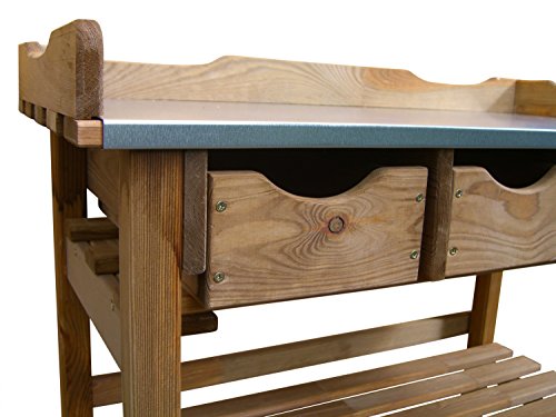 Ein guter Pflanztisch ist aus massivem Kiefernholz gefertigt und hat eine verzinkte Arbeitsfläche. Sehr praktisch sind Pflanztische mit Schubladen. In dem Modell mit 3 Schubladen können Sie Ihre sämtlichen Pflanzutensilien sortieren und verstauen. Zusätzlich bieten gute Pflanztische auch eine Zwischenablage zum kurzzeitigen Abstellen von Töpfen und anderen Materialien. Um schmerzfrei arbeiten zu können, hier ein letzter Tipp: Es empfiehlt sich ein Gärtnertisch mit einer 80 – 90cm hohen Arbeitsfläche.