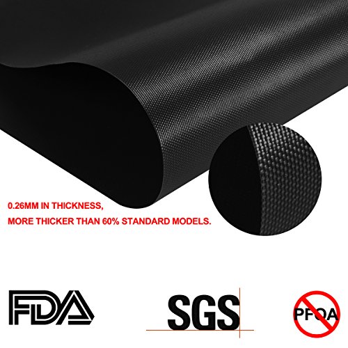 Perfektes Grillen jedes Mal! Diese 100% Antihaft Grillmatten sind ein unentbehrliches Kochzubehr für Ihr Grillgut! Lebensmittel gleiten einfach von seinem PTFE (PFOA-frei) beschichteten Antihaft-Stoff! Ideal für den Einsatz zu Hause, im Freien, Küche, Camping und mehr! Ideal zum Grillen von Gemüse, Fleisch, Fisch und Meeresfrüchten, Pizza, Kabobs, Würstchen, Speck, marinierten klebrigen und glasierten Speisen, Hhnchenflügeln, Rippchen, Eiern, Pfannkuchen und Crêpes und vielem mehr! Aufrumen ist ein Kinderspiel. einfach abwischen oder mit warmem Seifenwasser abwaschen. Leicht wegrollen oder flach lagern. Kann auf die bentigte Gre zugeschnitten werden. Grillmatten sind 30 * 40 cm / 11,81 * 15,75 Zoll, kann geschnitten werden, um jede Gre Grill passen.