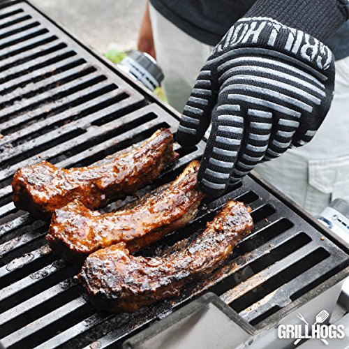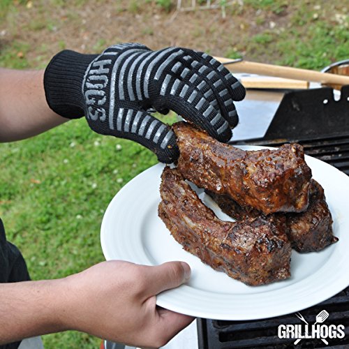 Premium BBQ – Grillhandschuhe (1Paar) extrem hitzebeständig bis 500°C – ideal auch für Backofen, heisse Pfannen, Lagerfeuer und Kamin günstig kaufen von GrillHogs im Onlineshop für Grills und Grill-Zubehör – alles zum Grillen.