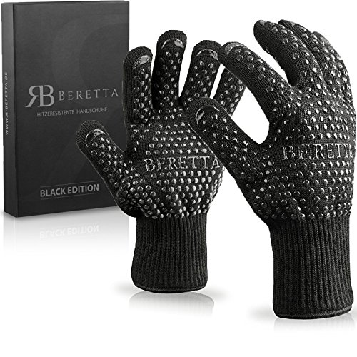 R-Beretta Profi Grillhandschuhe (2er Pack) kurzzeitig bis zu 500 °C – Nach EN407 Zertifizierte Ofenhandschuhe aus Kevlar-Nomex Fasern – Kaminhandschuhe extra Lang – Topfhandschuhe – Backhandschuhe günstig kaufen von R-Beretta im Onlineshop für Grills und Grill-Zubehör – alles zum Grillen.