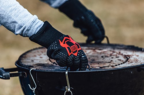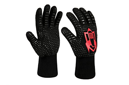 OVOS grill rüstung 932 ° f extrem hitzebeständige topflappen-EN407 zertifizierte bbq-handschuhe zum kochen aramid-handschuhe mit rutschfesten schwarzen silicon (2 Handschuhe)