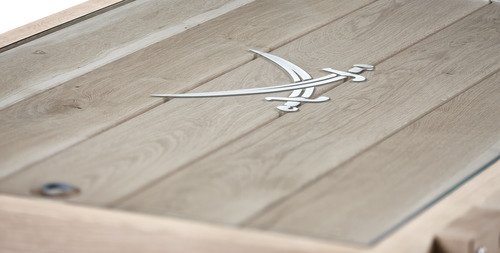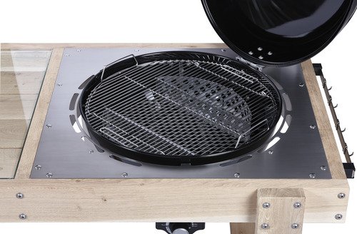 Holzkohle-Kugelgrill von RÖSLE integriert im Sansibar Plankentisch.