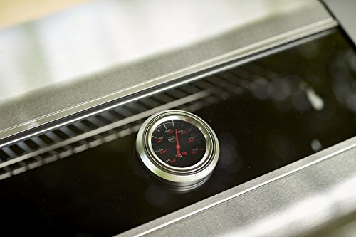 Deckel mit Glaseinsatz gewährleistet auch bei geschlossener Grillhaube Einblick in den Garraum; Inkl. großem Deckelthermometer mit Anzeige in °C und °F