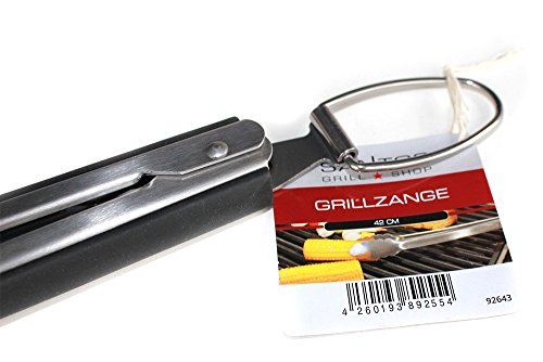 Santos Grillzange aus gebürstetem, rostfreien Edelstahl Grillzubehör mit extra-langem Griff und Aufhänge-Ösen