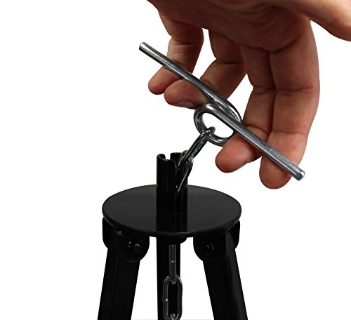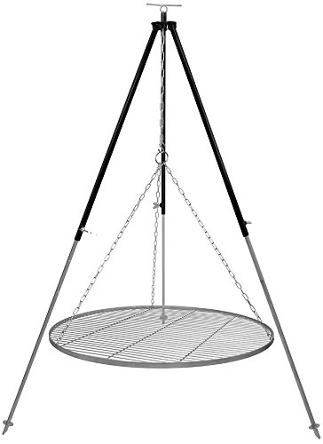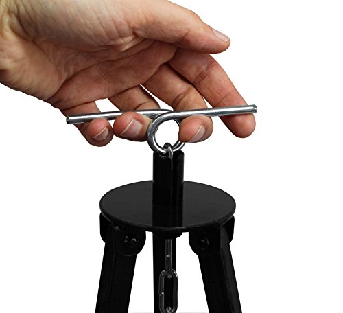 Das Schwenker Schwenkgrill Dreibein von Grillplanet kann in mehreren Stufen bis 1,8 m ausgezogen werden. Es ist schwarz lackiert und bietet eine Kettenhöhenverstellung durch Kettenzug.