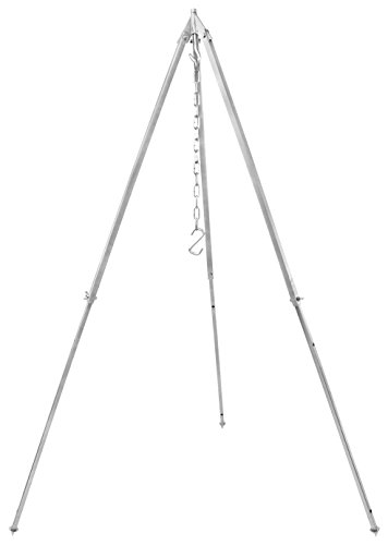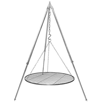 Das extra starke Dreibeingestell kann in mehreren Stufen bis maximal 170 cm ausgezogen werden und ist aus Eisen verzinkt. Auch das Gestell wurde in Handarbeit hergestellt und deshalb gilt hier eine Maßtoleranz von plus minus 10 cm. Die Schenkelstärke ist 2 x 2 cm. Sie können in dieses Gestell auch Gulaschkessel bis 50 Liter einhängen.
