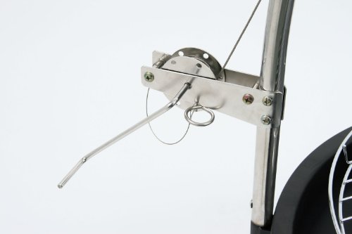 Die Aufrollmechanik ermöglicht Ihnen, das Grillrost hoch zu kurbeln und herab zu lassen. Das Stahlseil läuft über eine Metallrolle. Mit dem Splint lässt sich das Grillrost auf eine bestimmte Höhe feststellen.