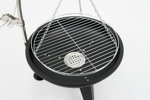 Der Grill ist ausgestattet mit einer Ø 54 cm großen Grillfläche und einer Ø 64 cm großen Feuerschale. Der massive Schwenkgrill wiegt etwas mehr als 9 kg und ist dennoch leicht zu verstauen.