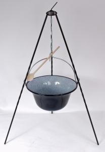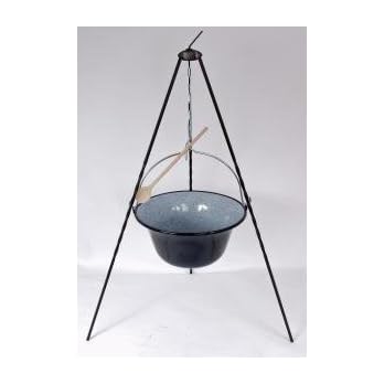 Original ungarischer Gulaschkessel mit passendem Dreibein und Kochlöffel.