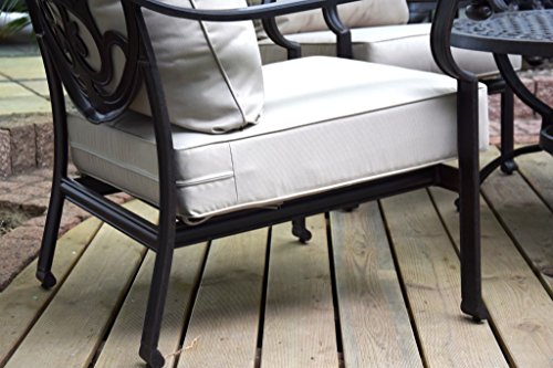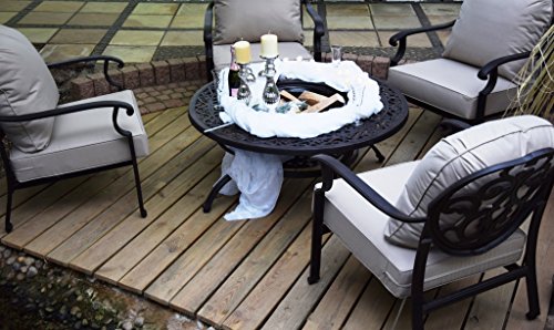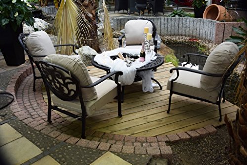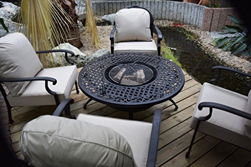 Grilltisch,Multifunktionstisch, Garten-Sitzgruppe, Gartentrend 2015 Erfüllen Sie sich einen Traum und verweilen mit Ihren Gästen an diesem exklusiven Grilltisch. Diese Sitzgruppe lassen wir extra aus leichtem Aluminiumguss für uns produzieren. Selbstverständlich ist dieses Material Wetterfest und für Ihren Garten geeignet. Im Vordergrund steht die natürliche Schönheit und Langlebigkeit dieser Möbel. Sie genießen morgens das Frühstück und können abends gemeinsam mit Ihren Freunden grillen oder einfach nur ein kleines Lagerfeuer entfachen. Vorbei die Zeit wo einer alleine abseits am Grill steht ! Oder nutzen Sie die Schale einfach als Sektkühler für Ihre Gäste !!!!!! Lieferumfang: 4 Stck. Stühle 8 Stck.Polster 1 Stck. Tisch Aluguss 1 Stck. Grilleinsatz 1 Stck. Grillhaken 1 Stck. Funkenschutzhaube 1 Stck. Abdeckplatte Maße: Tischdurchmesser : 120cm Grilldurchmesser: 55cm Sessel: Sitzhöhe: ca.32cm +Polster Polster Stärke:14cm Polsterfare: creme Breite:ca.77cm Tiefe: ca.65cm Gestellfarbe: bicolor schwarz/braun Durch jahrelange Erfahrung im Polyrattan u.Gartenbereich,können wir Ihnen eine lange Nutzungsdauer bestätigen. weser-24.de …der Versand erfolgt ohne Dekoration !!!