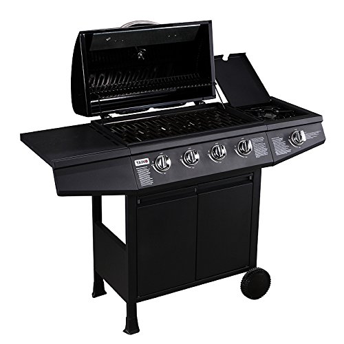 TAINO® Gasgrill BBQ GRILLWAGEN TÜV 4 Edelstahl Brenner Gas Grill + Seitenkocher SCHWARZ