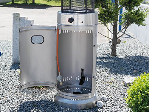 TECHNISCHE DETAILS – Produktabmessungen des Heizpilz (H x Ø): 180 cm x 46 cm | Gewicht des Terrassenstrahlers: 15 kg | Maße Glasröhre (H x Ø): 80 cm x 12 cm | Betriebsdruck 50 mbar | Betrieb mit handelsüblichem Propangas. Gasvebrauch : ca. 800g/h