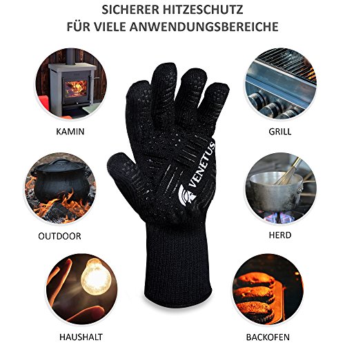 UNIVERSELL EINSETZBAR – Ob das heiße Blech im Ofen beim Kuchen backen, der heiße Topf auf dem Herd, der Türgriff am Kamin oder ganz klassisch am Grill. Mit VENETUS-BBQ an deiner Seite steht deinem kulinarischen Abenteuer in der Küche und am Grill nichts mehr im Weg!