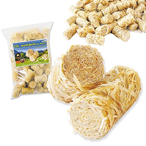 Qualitätsanzünder XXL Anzünder aus Bayern – Grillanzünder Kaminanzünder Anzündwolle von MGS SHOP aus bayrischem Holz, nach nach DIN EN 1860-3:2003-12